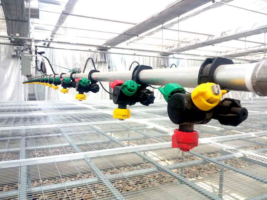 蔬菜集約化育苗裝備及技術(shù)采用配套苗床、軌道式噴灌系統、環(huán)流系統、優(yōu)質(zhì)基質(zhì)、補光系統等設施設備,并通過(guò)嚴格的溫濕光系統環(huán)境控制從而達到育苗生產(chǎn)的標準化、產(chǎn)業(yè)化生產(chǎn)。